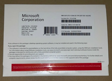 WINDOWS SERVER 2019 STANDARD Original 64 BITS® + NF-E